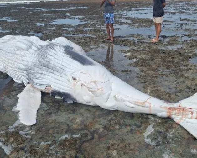 O litoral de Alagoas registrou, nesta sexta-feira (22), mais um caso de encalhe de baleia-jubarte. Um pescador local encontrou, na praia de Piaçabuçu, a carcaça de um filhote macho da espécie Megaptera novaeangliae, medindo aproximadamente 5 metros de comprimento. O corpo do animal apresentava marcas de mordidas na cauda, sinalizando que a morte pode ter ocorrido ainda em alto-mar.